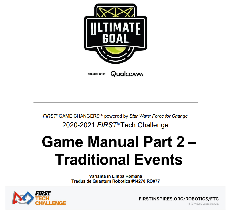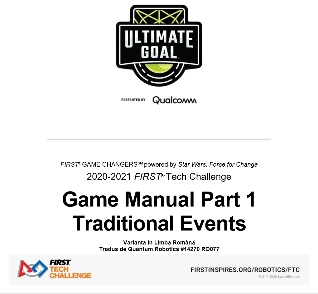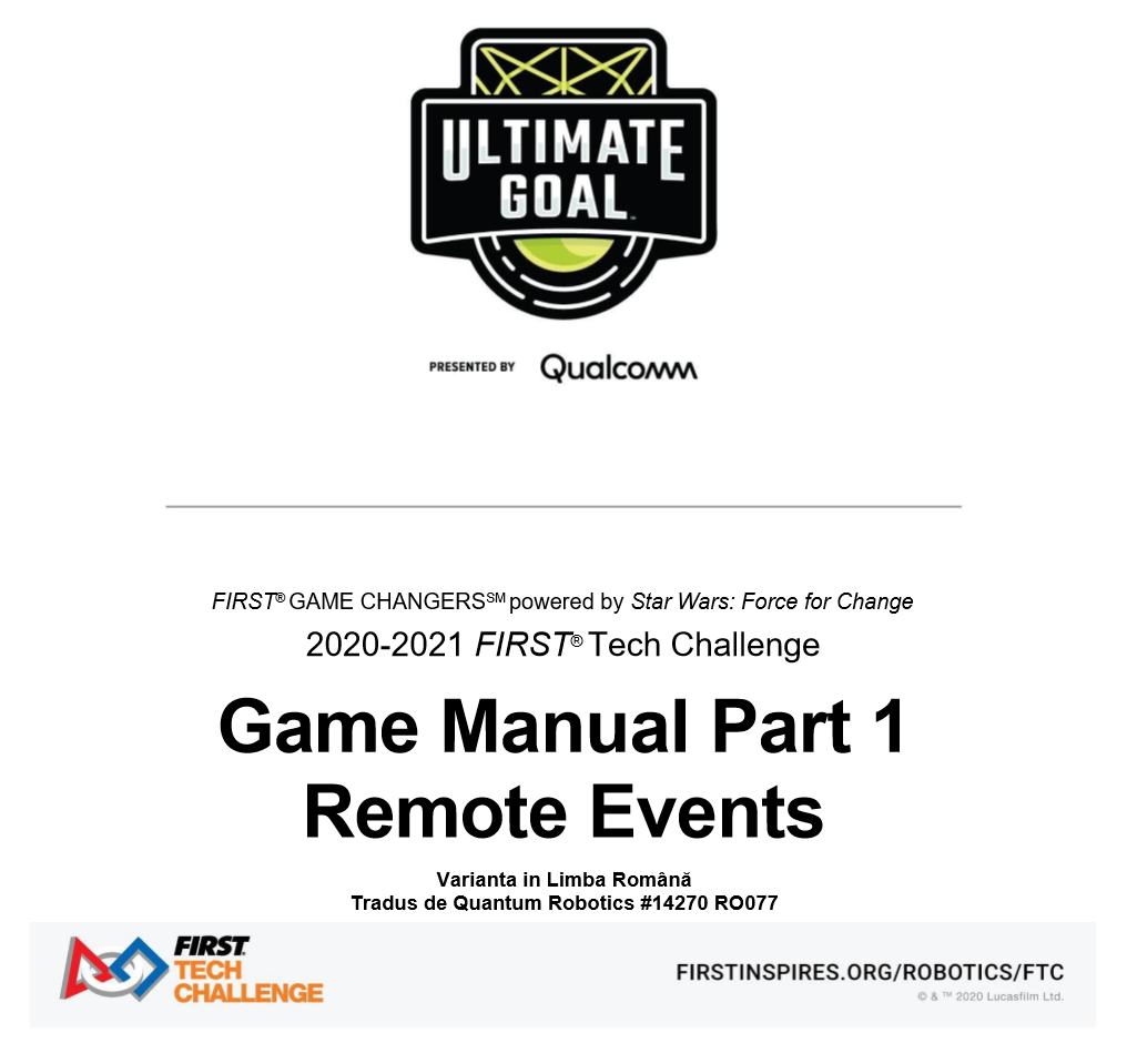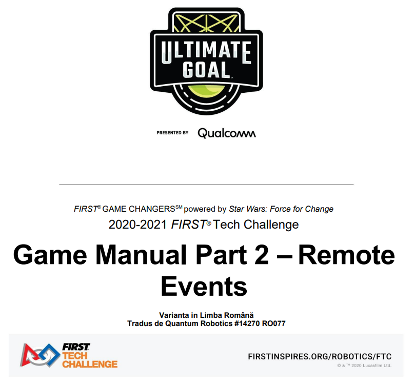 The Ultimate Goal Game manual for remote events translated into Romanian